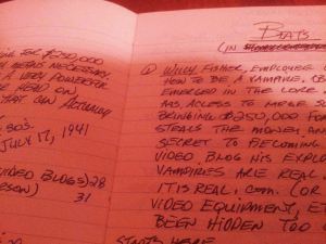 He then goes on to talk about what he saw. He will usually ask himself why that particular thing made an impression on him, why does he feel it is so important. Always asking why, why why. The good thing about this form of outlining is that if you ever get stuck, you can go back to that conversation and reread what you wrote. You can even write to yourself again, asking why you feel like you are stuck in the story, what you might be able to do to get around it, whatever. It's all about connecting with the characters and their story, reliving the emotions you felt when you first thought of the idea, sometimes long before that idea is a story.