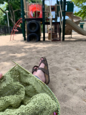 Then a few days ago I decided to really start making some progress. Crack the whip of self discipline and get it done. Go, go, go. I knit in the park.