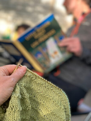 I knit while Ken read Ellie stories (That book is called The Little Wooden Robot and The Log Princess and it’s terrific.)