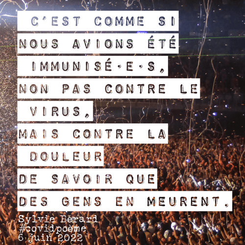 Il y avait longtemps que je n’avais pas écrit de #covidpoème. Je pensais que je n’en écrirais plus. Je n’en ai peut-être même pas écrit un nouveau.