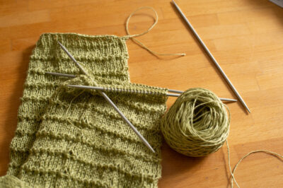 Greetings from Sleeve Island, where I’m still hanging out with Donner. I’ve been knitting and knitting and knitting I finally find myself here: