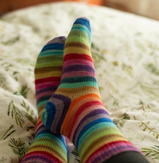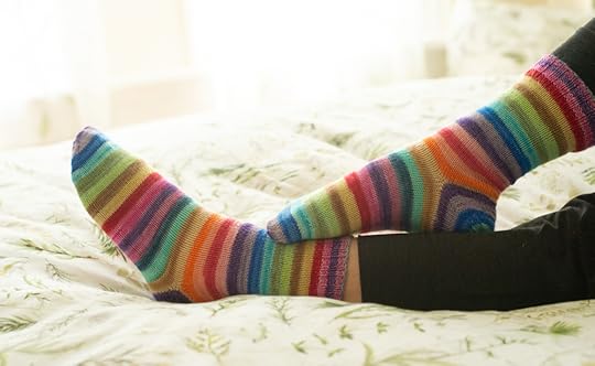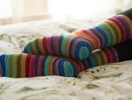 I finished a pair of socks, a friendly rainbow pair to celebrate Pride and in a tremendous show of commitment to the sweater – I didn’t cast on more.