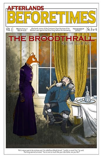 The third short story in the Beforetimes series is “The Broodthrall” in which Nix, having been indentured to the King for fourteen years, finally has an opportunity to be set free–if the deteriorating Kingdom can hold itself together long enough for the King to grant his emancipation.