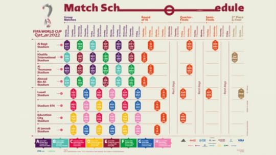 2022卡塔尔世界杯揭幕战在2022年11月21日打响,决赛于当地时间12月18日晚18时在卢塞尔体育场进行。比赛在卡塔尔境内7座城市中的12座球场举行。