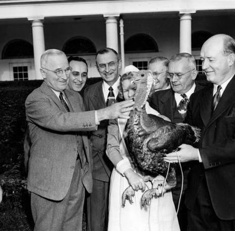 Beginning in 1947, two large poultry industry groups established the tradition of sending turkeys to the White House. The first one delivered was a 42-pound Texas tom to President Harry S. Truman. The organizational aspect of the gifted turkey inspired Truman, who began the ritual of posing with the turkeys for photographers, elevating the importance into the public’s awareness. Because of the publicity, and Truman’s quip that the bird would “come in handy” for his much bigger planned Christmas gathering, it is often erroneously pointed to as the first turkey pardon. Alas, this is not accurate, as the tom turkey fulfilling his purpose, if you get my meaning.
