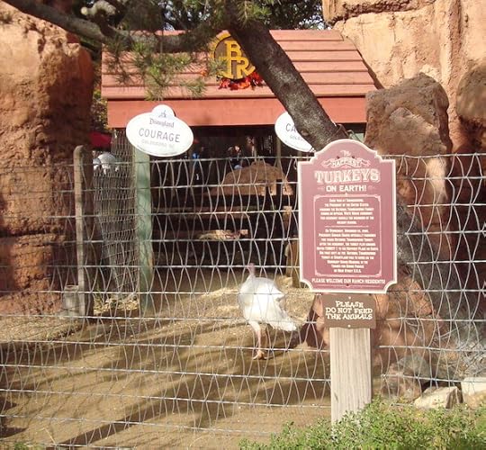 In 2005 President George W. Bush decreed the two gifted birds — named Marshmallow and Yam — be sent to Disneyland to live out their days and serve as honorary grand marshals of that year’s Thanksgiving day parade. This would be done for the next five years, the last couple named Courage and Carolina housed in a spacious pen at Big Thunder Ranch. We visited Disneyland a week before Christmas in 2009 and were able to meet the lucky fowl.
