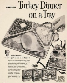 Fans of the TV dinner can thank the turkey. . . sort of. In 1953, someone at Swanson misjudged the number of frozen turkeys it would sell that Thanksgiving — by 26 TONS! Swanson executive Gerry Thomas came up with a brilliant plan: Why not slice up the meat and repackage with some trimmings on the side? Cornbread stuffing, frozen peas, and sweet potatoes were packaged in a tray similar to those used for airline meals and were sold for 98 cents. The TV dinner was born!