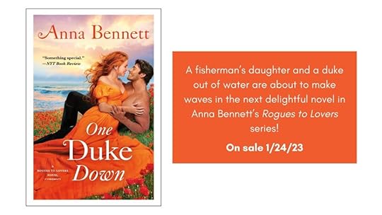 Check out the sunny, swoony cover of my next book, ONE DUKE DOWN! It stars Poppy, a fisherwoman who (much to her dismay) catches an unconscious, attractive stranger in her nets. Even worse, when he wakes, he’s convinced he’s a duke…