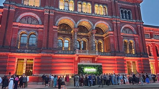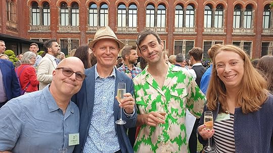 The big publishing parties returned after a break during the pandemic. I drew a portrait of myself at the biggest – the HarperCollins party at the V&A museum.