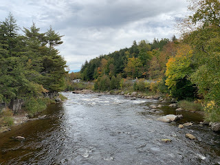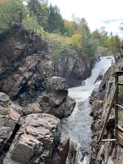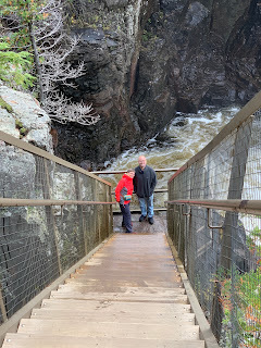 Getting closer to High Falls GorgeIt's so nice to have friends come in from out of town to visit so you can get to spend time together scaling one of the tallest peaks (that you can drive to, it is me after all) in NY state - Whiteface Mountain OR sitting here in silence (except when you can't spell the word OR!) doing our own things. So much has been done and so much time has flown by that it's sad to say that W is leaving Monday. And when we weren't up on the mountain we were watching and listening to the water flowing through High Falls Gorge.