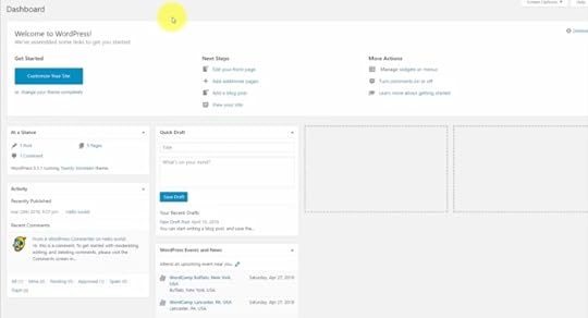 Returning to the admin backend, when you first log in, you’re going to see the dashboard and this is really just a one page overview of your entire site. You can see how many posts and pages you have, how many comments there are, what version of WordPress you’re running, and what theme you have. If you want to quickly type out a blog post, you can do that right from the dashboard. They also show you local events that you could potentially go to to learn more and meet other people that are involved with WordPress.