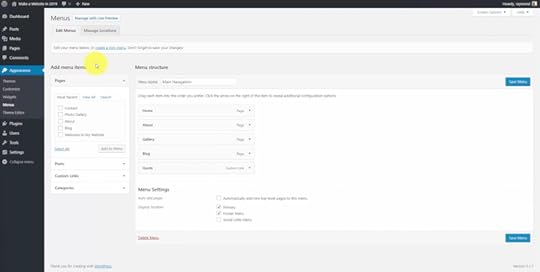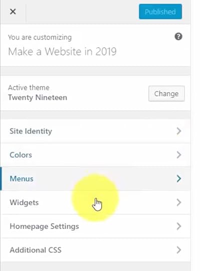 In Menu, this is where we create the navigation for our site. Usually one of the first things I do when I create a website is create a main navigation menu. You can create a new menu by clicking the create a new menu button. When created, you can give it a name to help you organize your menus should you have more than one. You add links to the menu by adding your published pages or your posts from the left side of the screen. Then once they’re on the menu section, you can drag and drop them to change the order. You can drag them inward if you want to do a sub menu or sub item for a nested, expandable menu.
