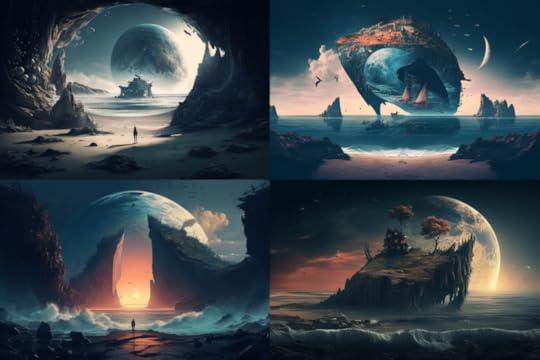 Next comes my interaction with Midjourney. At times I had to use just a few words from the next stanza to ensure the prompt made sense. I started with the title alone. (If you click on an image, you should get a larger version.)