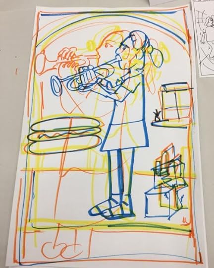 Trumpet player drawn by four different people from a photo and trumpet players drawn by one person from memory with eyes closed. @uw_artdept @uwmadison #comics.