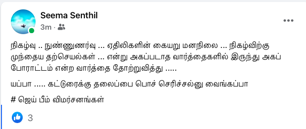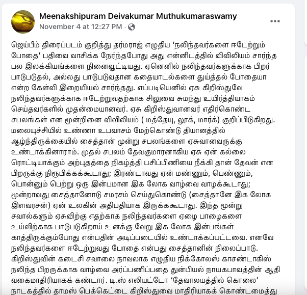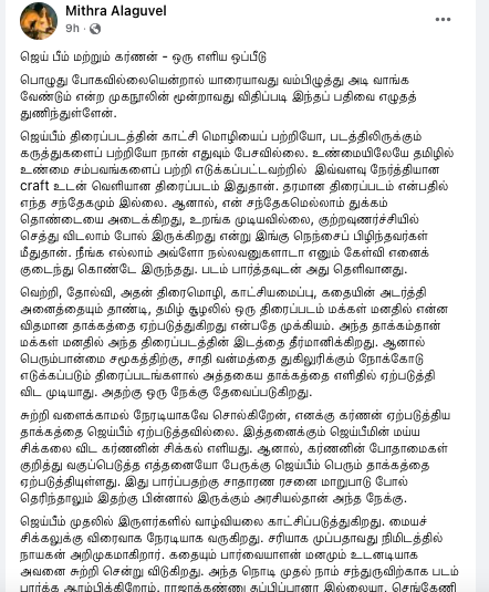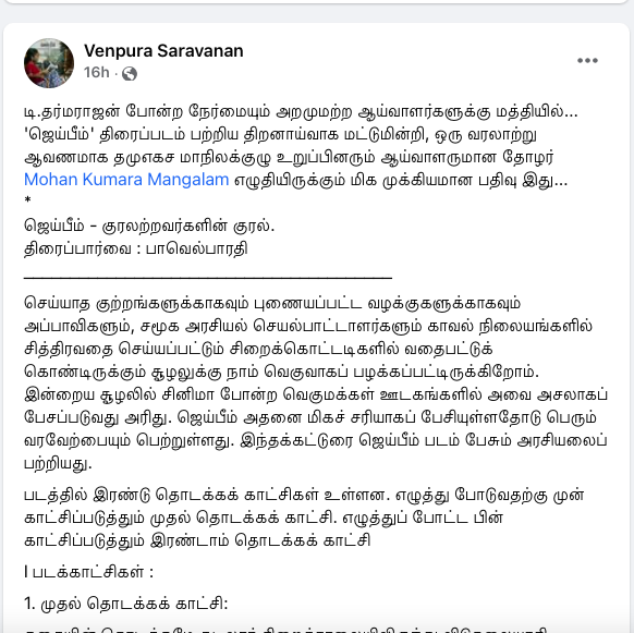 'ஜெய்பீம்' திரைப்படம் குறித்த எனது முதல் பதிவு இப்படி இருந்தது: