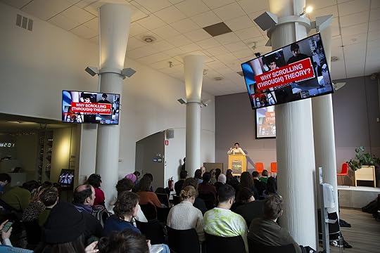 With his chaotic lecture performance, Jordi Viader Guerrero cheerfully disrupted the panel. Meanwhile, he managed to inject some interesting ideas on the “infinite scroll as a symbolic form”. For Guerrero, the infinite scroll should be addressed in itself, and not just as a means to navigate content. Scrolling is “a pleasure device”, an activity that goes beyond the utilitarian goal of acquiring information.