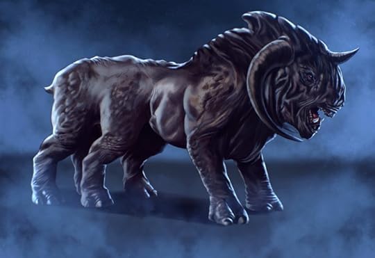 Dalkiate is not subtle, and his skin is almost impenetrable. He is five times as large as a rhino, and the body is very much similar, though stronger and more muscular. The head is far different and resembles that of a hairless bear. Absent of sharp teeth, except the two canines. The other teeth are flat and large. The canines extend when magic is stolen. Along with stealing magic, this creature also drinks the blood of its victims. Dalkiate is immune to Fire, Wind, Water, Lightning, Fear, Confusion, and more.