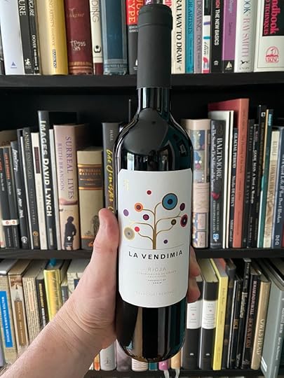 This is a book blog, not a wine blog, but if you are able to enjoy a glass, this one pairs well with a shelfie. La Vendimia, Rioja is from Spain. The colour is a beautiful ruby red, especially against the mellow May evening light. It has slightly more alcohol than the Italian wines I’ve had lately. The flavour has a slightly bitter aftertaste that I quite enjoyed. Definitely a bolder taste. I love the label design on this wine as well, which is clean, playful and reminded me of Miro.