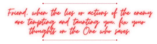 Friend, when the lies or actions of the enemy are tempting and taunting you, fix your thoughts on the One who saves.
