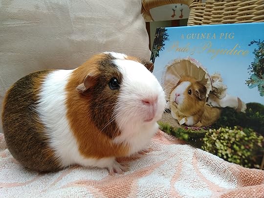 Nutmeg, one of Linda’s gorgeous guinea pigs with his copy of Pride and Prejudice!