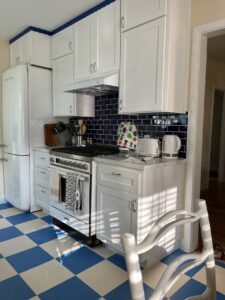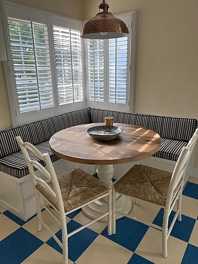 Best of all, I have a lovely working kitchen. It’s my favorite room in the house, its breakfast nook my favorite spot to hang out in. (Sandy’s too). For the past decade-plus, we’ve lacked proper dining facilities. Ours consisted of the eat-in counter of our New York City condo. The other day when Sandy and I were eating lunch in our cozy breakfast nook, I told him, “I’m happy because now I get to look at your handsome face while we eat.”