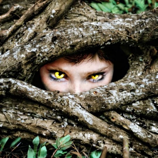 (Diana in her hiding place at the Oregon coast. The AI added the creepy eyes)