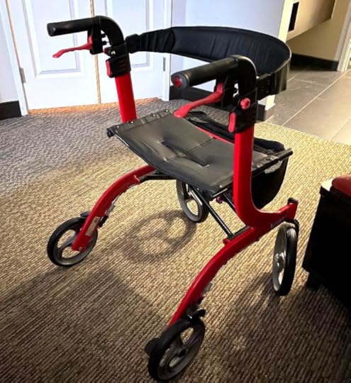 This will be my first personal disability blog entry, so I will do a little back story. Pictured here is Gracie, my rollator, who has become my best friend and constant companion. This wasn't always so. Decades ago, I suffered two strokes from an accident. The effect was entirely on my forward and backward balance, but back then, 1956, they did not have the technology available for imaging that could have shown this. It remained fairly unremarkable for my first 50 or so years of life. For example, in my 40s, I took my grandchildren parasailing. The owner of the boat impressed upon me that upon returning to the boat, I must land with both feet and begin walking forward. Sure thing...no problem. However, upon landing, I could not co-ordinate that walking forward motion. I just sat down. Unharmed, and seemingly an excellent alternative, I thought little of it then. When cross-country skiing, I also fell into a sitting position at the bottom of steep hills because I could not co-ordinate that forward motion, putting one ski in front of the other to maintain momentum. This mattered little to me because, being a powerhouse, I got up as fast as I went down and my side stepping up a steep slope was unmatched in strength or speed. That side stepping skill came in handy in a ski marathon I entered, earning a bronze medal, and another race where I took first in my age group.