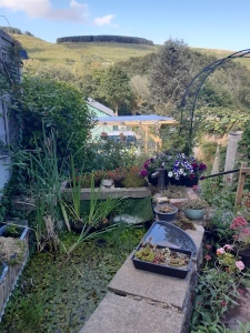Life here in Wales is fab. We’ve just had a wonderful, hot June, the garden is looking great, just wish my geraniums would flower, I’ll start them later next year. The pond is still leaking but Dave and I have talked ourselves out of the rebuild yet again. I’ve got Elderflower wine bubbling away, and it looks like there will be more blackberries than last year, but the Elderberries still don’t look so good. We’ve had visits from family which have been such fun and are making new friends around us.