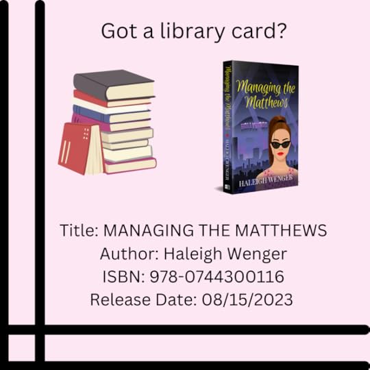 Request your local library stock MANAGING THE MATTHEWS and let me know here. You’ll be entered to win a $50 Amazon gift card now through 9/31/23!