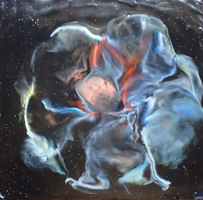 I'll include my morning poem at the end here in just a minute, but the picture accompanying this post is what moves me the most and eventually gave my raven poem some direction, context and significance. I remember painting this encaustic in the winter of 2018. I'd been painting with encaustics less than a year and everything was an experiment. That day I played around and eventually ended up with something I liked, but didn't even know what it was until I stood back to see. In that moment it struck me that the nebula at the heart of creation had revealed itself to me - the Raven With Big Heart Nebula, the creation myth of the ancient people of the land I live on brought to light and life. It moved me as only real art can do. But then again, who is the one being moved (ie. doing the moving) than oneself, always oneself...