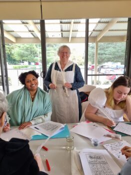 In May, I attended A Regency Affair, a wonderful weekend of Regency dancing, workshops, costumes and fun. I taught a number of workshops including cutting a feather quill and writing with it.