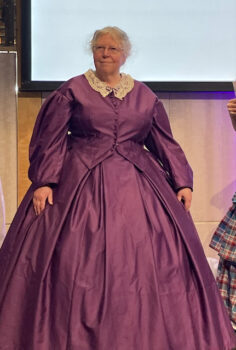 June and July were mad sewing for the Romance Writers of Australia conference in Sydney, where I was co-presenter for a workshop on Undressing the Historical Heroine, along with Beverley Eikli, Cathleen Ross, Elizabeth Rolls and Alison Stuart. I outfitted Cathleen, Elizabeth, Alison and myself in dresses from 1815 – 1901, and Beverley wore 3 different outfits she’d made from 1789 to 1850. I’d also brought replicas of historical underthings for the audience to pass around and examine. We wore all the correct layers and undressed on stage down to underthings. It was good fun and the audience feedback was very positive. But there was a lot of sewing to get ready – I finished my crinoline with *minutes* to spare!