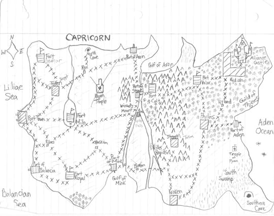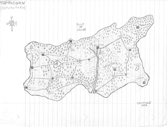 On second thought, I’m pretty sure I started with a horrible representation of the world that I quickly realized didn’t suit my vision and just as quickly tossed aside. I tried a continent next. Some of those broad strokes were helpful; however, the emerging stories (and backstories) rendered it obsolete in short order.