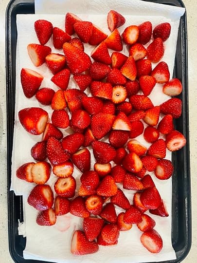 This week, I’ll be using my blue ribbon winning recipe (which is printed in the back of The Jam Queens) to make gifts for loved ones, not for competition. I am a ‘slow jammer’, making my jam over several days. And the heavenly aroma of macerated strawberries is reward enough.
