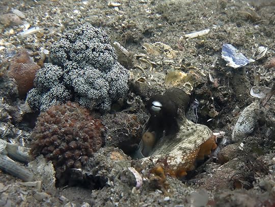 Last week I spent three days diving at the “Pipeline” site, in Nelson Bay, north of Sydney. This site was central to the book Metazoa – it is the site of the one-armed shrimp, the rise of soft coral, the kingfish, the inquisitive crab. It was beaten up badly by storms and floods in 2020 and 2021. I’ve gone back occasionally since then, watching for its recovery. On this trip, the site looked much better – still far from its best, but very good once again.