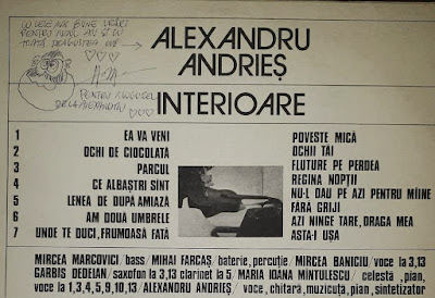 Cred că spre finele anlui 1984 am primit acest autograf de la Alexandru Andrieș, pe primul său disc, Interioare. După aproape 4 decade am avut onoarea de-a fi invitat să scriu câteva rânduri pentru antologia sa de poezii Fluture pe perdea (Ed. Paralela 45), coordonată de Florin Hălălău. Cartea se va lansa sâmbătă, 25 noiembrie, ora 16, la Târgul de Carte Gaudeamus, la standul editurii Paralela 45. Voi fi, cu toată bucuria, acolo. Iată, mai jos, și cuvintele mele din carte: