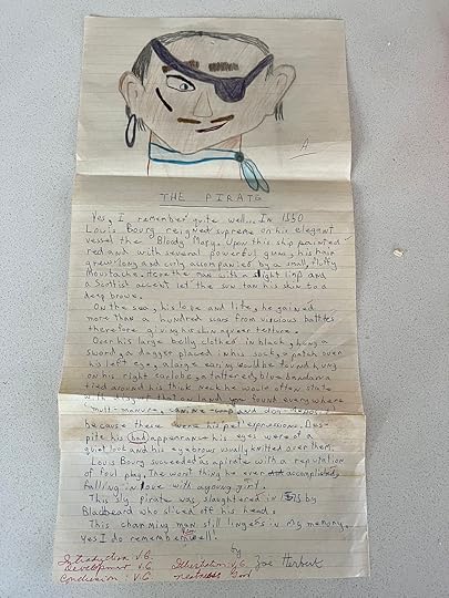 I thought I’d share my favourite one. It’s a story called ‘The Pirate’ I wrote in grade six, when I was 11.