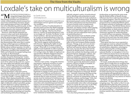 What should feel ironic to Patrick is that long before policies of multiculturalism, Britain was always an exemplar of a multicultural nation. From the early Neolithic influx of the east European Beaker people, Romans, Vikings, et al, each wave of new people brought with them not only their spiritual and material cultures, their tastes and wares, but also the ideas that laid the bedrock for British society. Look around – observe the unlikely but dazzling variety of physical features, languages, cultures, and traditions. To describe this multicultural nation we inhabit as a failed project insults the United Kingdom by disregarding the very foundations of our national identity – not least, ignores the distinct but complementary cultures of Welsh, of Scottish, of Irish, and of the English.