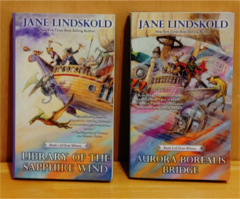 Last summer, I had the pleasure of attending a reading at Bubonicon by Jane Lindskold. She read from her latest novel, House of Rough Diamonds, the third novel in her Over Where series. She also gave away a copy and I was the lucky, random winner. Since House of Rough Diamonds is book three, I had to go pick up the first two books of the series, Library of the Sapphire Wind and Aurora Borealis Bridge. I have finally had a chance to read them and I’m really pleased I dived into this series.
