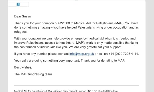 Last weekend I donated 225 euro to Medical Aid for Palestinians and 75 euro to Voices Against War after running the White Feathers fundraiser all January. So grateful to everyone who has donated. Am packaging up any remaining orders. Thank you all so much!