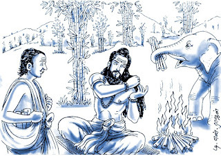 இன்று மூங்கில்காட்டில் தன் சடாமுடியை உலர்த்தும் இவன்,அன்று பாவை போன்ற மகளிர் மனம் நெகிழ்ந்த அவனே தான் என்கிறார் மாற்பித்தியார்.