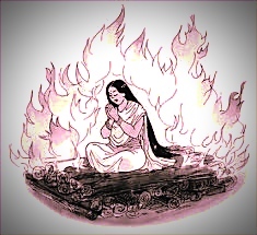 பெருங்கோப்பெண்டு தன் கணவன் ஒல்லையூர் தந்த பூதப்பாண்டியன் இறந்ததும் தானும் அவனுடன் சிதைத் தீயில் இறங்க முடிவு செய்கிறாள். அதைத் தடுக்கும் சான்றோர்களிடம், “மலர்ந்த தாமரை பூத்த பொய்கையும், தீயும் ஒன்றே,” என்கிறாள்.