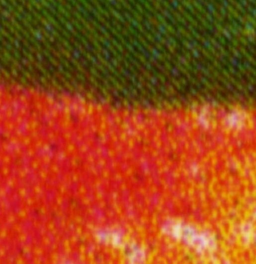 You can see there are no rosettes or regular patterns of any kind here, just roughly equal-sized dots at arbitrary locations. But hold on a sec! Each dot can only be one color, since there’s no such thing as variable-color ink. Just how many colors of dot are there in this picture?