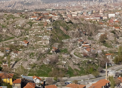 Geçenlerde Ulus'a yolum düştüğünde kalenin surlarına tırmanıp "sana bir tepeden baktım ey aziz Ankara" diyesim geldi, bir bakayım şehrimiz yerinde duruyor mu, görmeyeli neler değişmiş, kentsel dövüşüm hızla ilerliyor mu (evet). Dikkatimi çeken, kaleden Hıdırlıktepe, Bentderesi, Çinçin yönüne baktığımda neredeyse tamamen dümdüz edilmiş olmasıydı; değişik yıllarda geldiğimde azar azar yıkılışını seyrediyorduk, artık pek bir şey kalmamış... Kimine göre çok iyi oldu, o pis gecekondular, mezbelelik ortadan kalktı, kimine göre şehrin dokusu, kültürü, yaşam tarzı dozerlerle parçalandı.