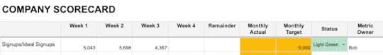 There were only 4,367 ideal signups last week. That’s lower than your target, so Bob would report that the metric is slightly below average to the team.