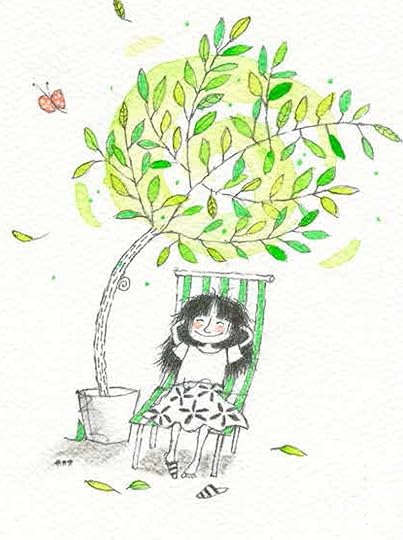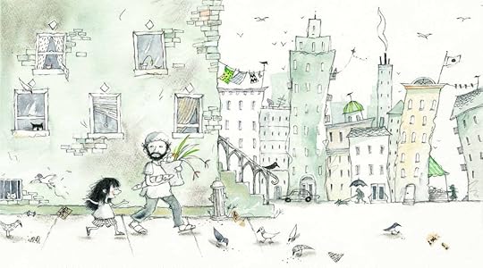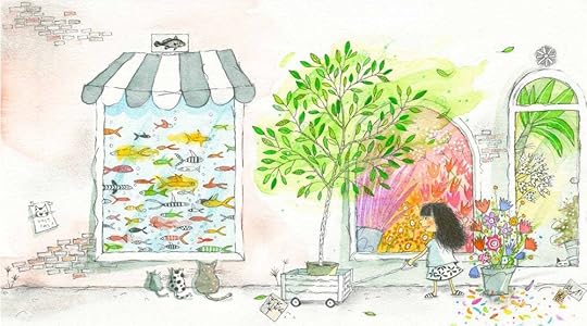 So I created Lily, a little girl who visits a forest for the first time in her life and falls in love, one tree at a time. She eventually asks her father if she could have a tree for her birthday. An impractical gift, since she and her father lived in a small dark apartment on the fifth floor of a tall gray building. But Lily insists that her tree will live on their tiny balcony and she will water it every day. She will name him George.