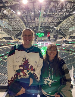 She flew into Dallas to see her team play my team in my team's barn. Now, her team isn't so good right now and we both knew the chances of the Stars beating the Coyotes were high--which they did--but it was more about the experience. Surprisingly, she wasn't the only Coyotes fan in the crowd. We spotted a handful of them.