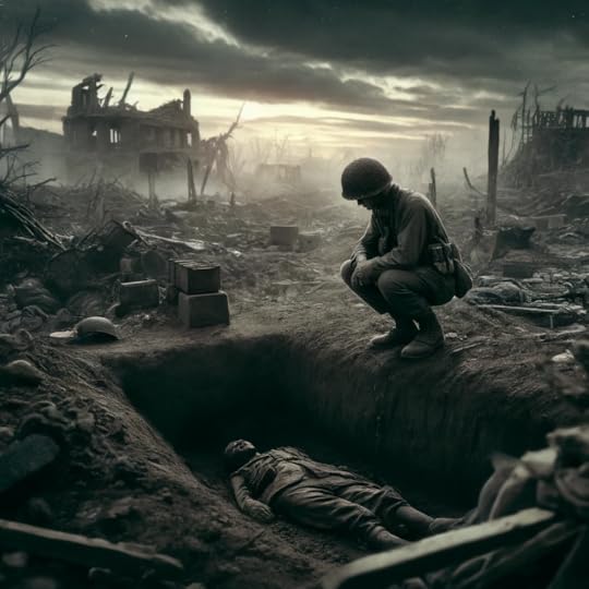 “Bir mezar taşı mı yapsaydım?” diye düşünüyorum alelacele gömdüğüm yere bakarken… Üzerine ne yazacağım ki? “Bozguna uğratıldıktan sonra kahramanca ordusundan geriye kalan et ve kan tabakasının oluşturduğu kaygan zemininden kaçmayı başarabilen iki kişiden şanslı olanı” mı? Hiçsanmıyorum…
