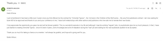 I wished her well and welcomed her back anytime she wanted to audition for another one of our books.