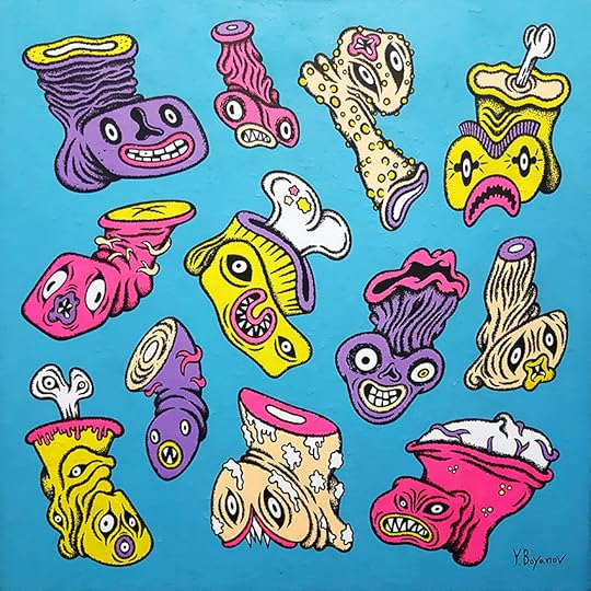 Картините ви често са в много ярки и весели цветове. Самите образи приличат на герои от комикс или приказка, но като се вгледа човек внимателно, ще види, че те не са весели, по-скоро са страшни, а някои и тъжни. Как се допълват позитивното и мрачното в една картина?